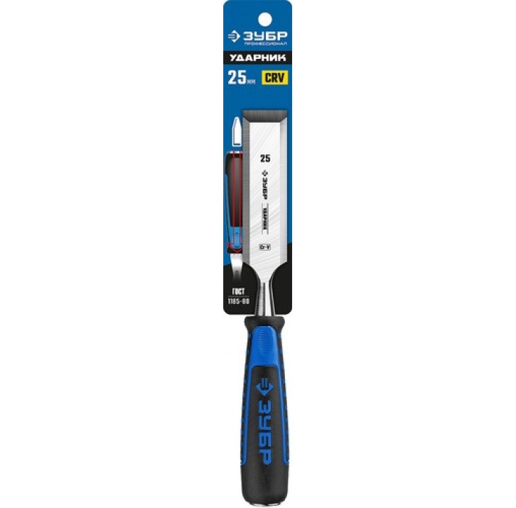ЗУБР 25 мм, для ударных работ, с ударопрочной двухкомпонентной ручкой и стальным затыльником, стамес