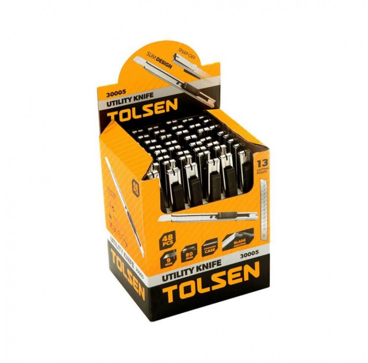 Нож пистолетный, алюминиевый, автоблокировка, 13 сегм, 9х80мм TOLSEN (48шт)