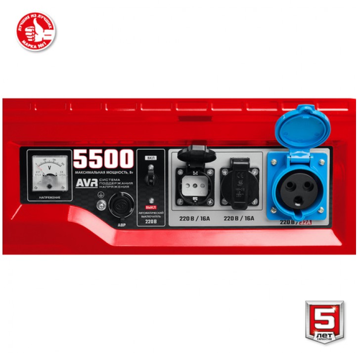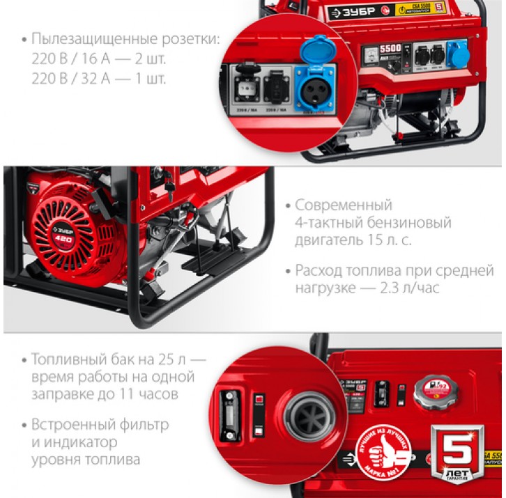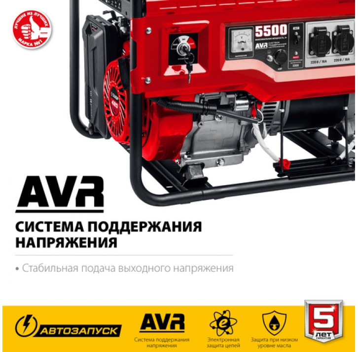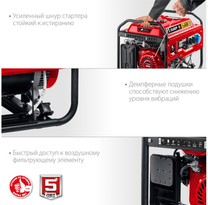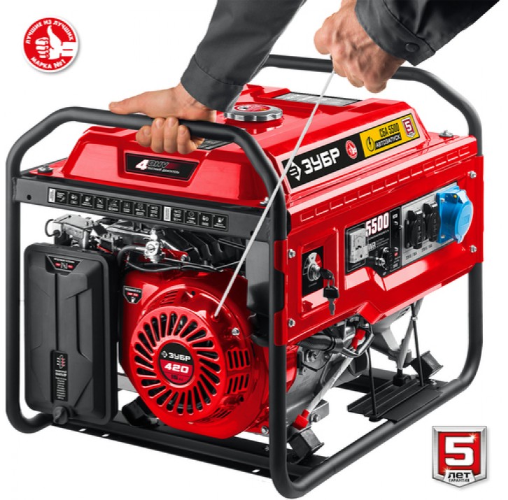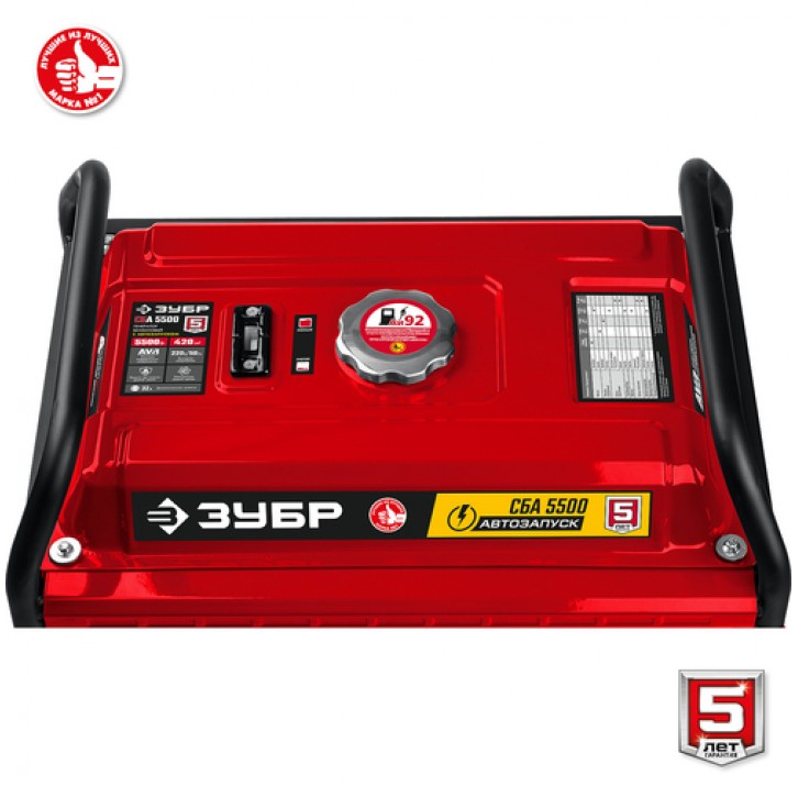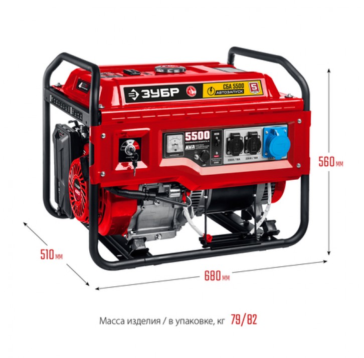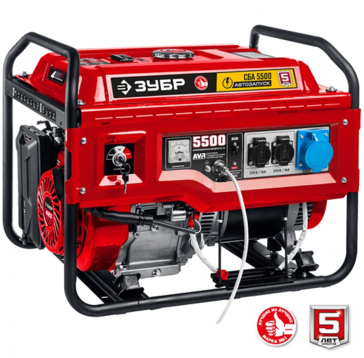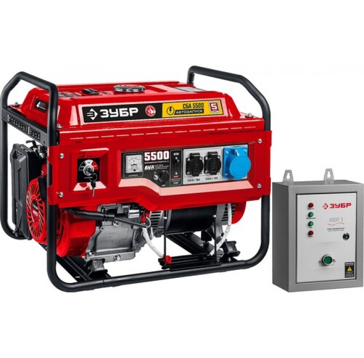 ЗУБР 5.5 кВт, однофазный, синхронный, щеточный, с автозапуском, бензиновый генератор СБА-5500 Мастер
