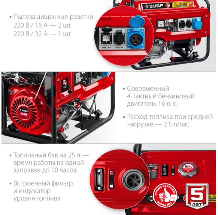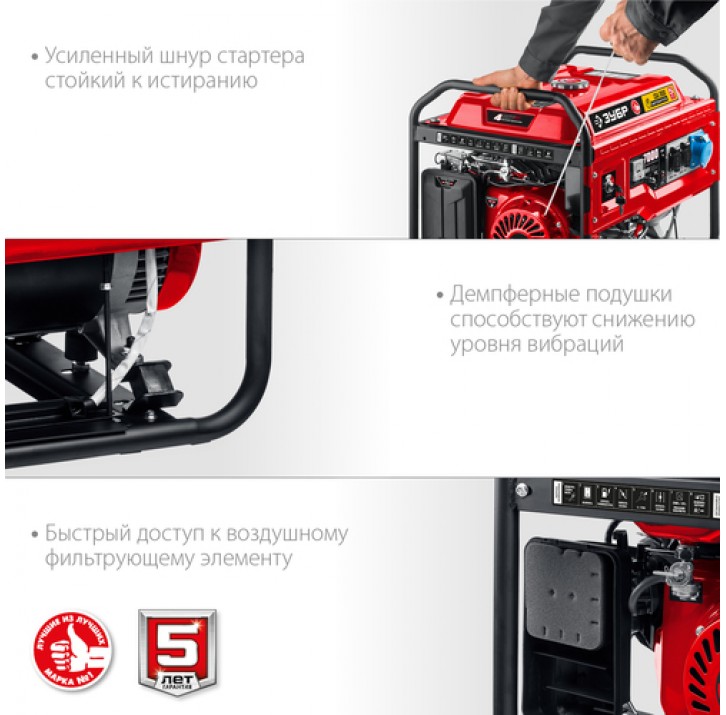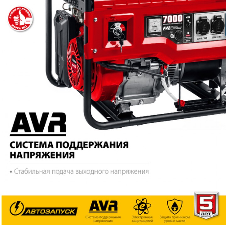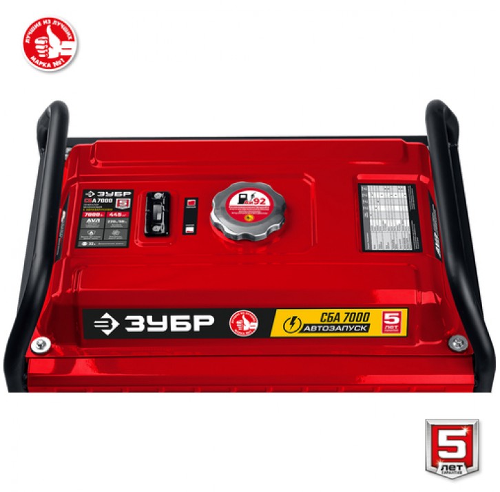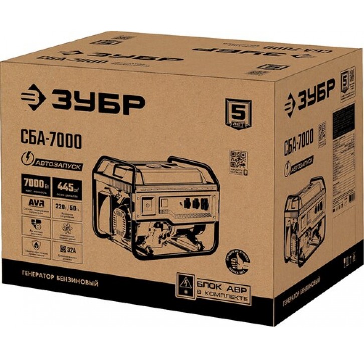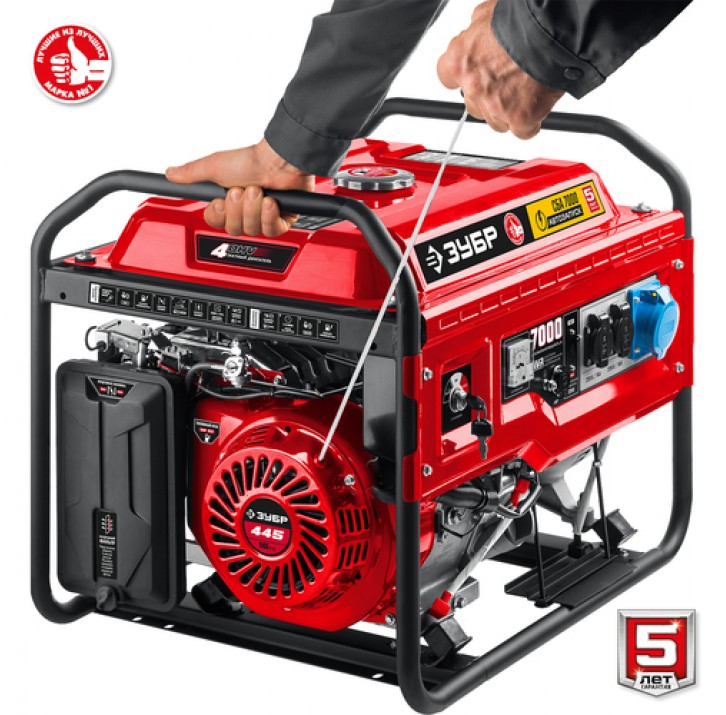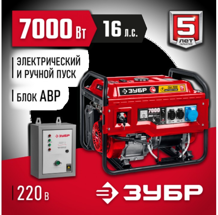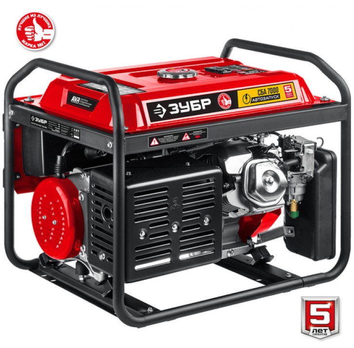 ЗУБР 7 кВт, однофазный, синхронный, щеточный, с автозапуском, бензиновый генератор СБА-7000 Мастер