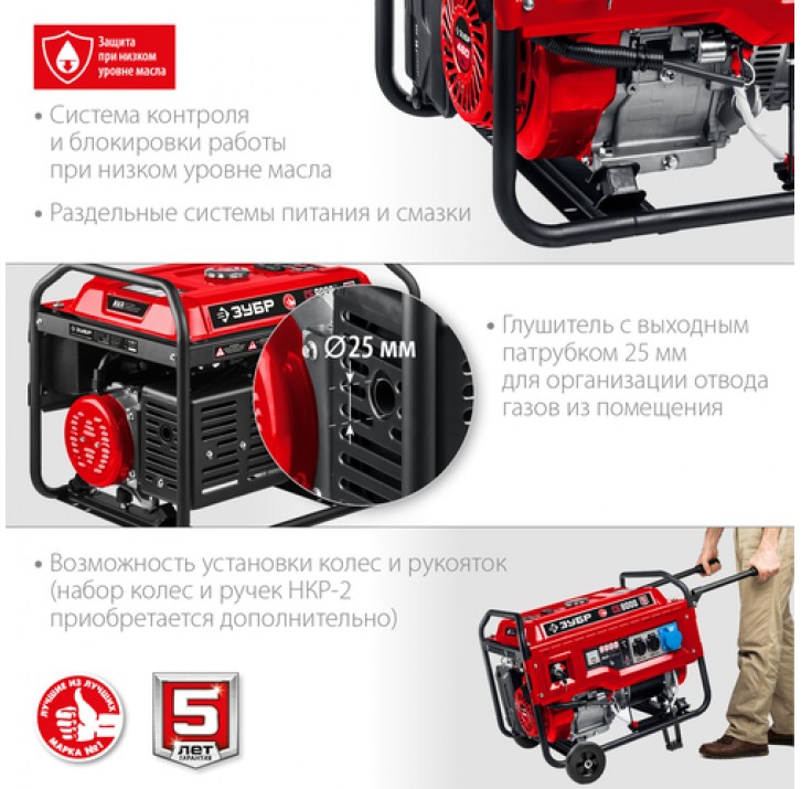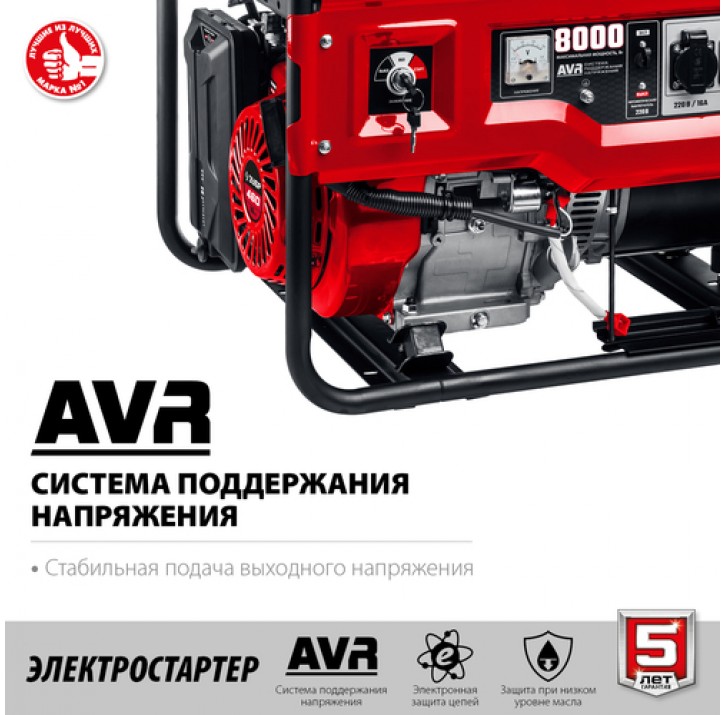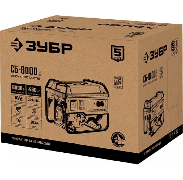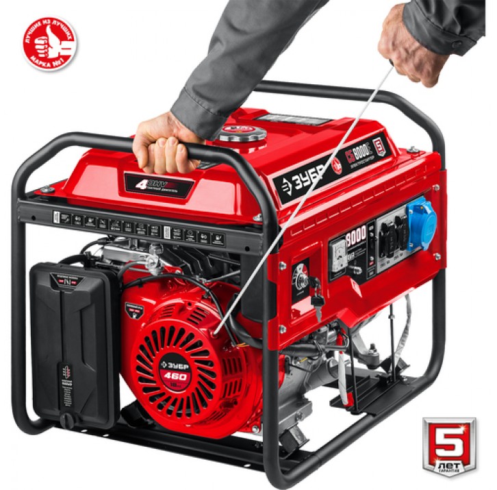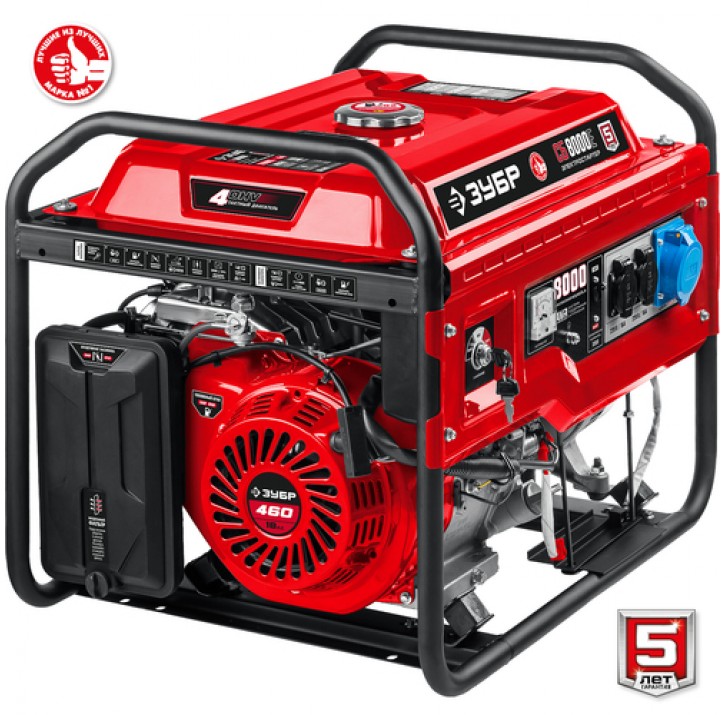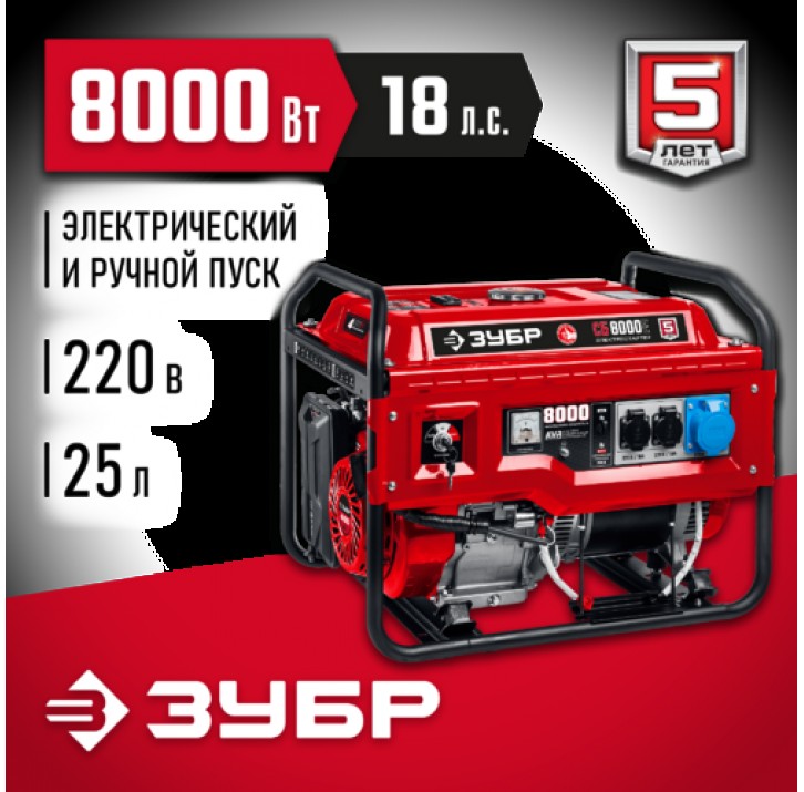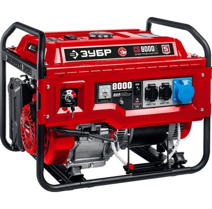 ЗУБР 8 кВт, однофазный, синхронный, щеточный, с электростартером, бензиновый генератор СБ-8000Е Маст