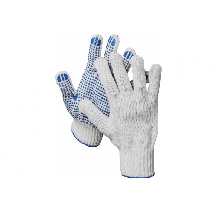 Трикотажные перчатки DEXX с защитой от скольжения 11400-H10 защищают руки от мозолей, царапин, ссадин и загрязнений во время строительных работ.Имеют ПВХ покрытие, которое создает четкий захват предметов и гарантирует противоскольжение предметов. Это обеспечивает комфорт во время использования.Технические характеристики трикотажных перчаток DEXX с защитой от скольжения 11400-H10Назначениесадово-строительныеМатериалхлопок, ПВХРазмерS-MКласс вязки7Количество в упаковке, шт10 (5 пар)РисунокточкаКомплектация *Перчатки - 10 парПараметры упакованного товараЕдиница товара: ШтукаВес, кг: 0,40Длина, мм: 230Ширина, мм: 150Высота, мм: 150Произведено Германия — родина бренда Россия — страна производства*Информация о производителе* Производитель оставляет за собой право без уведомления дилера менять характеристики, внешний вид, комплектацию товара и место его производства.Указанная информация не является публичной офертой