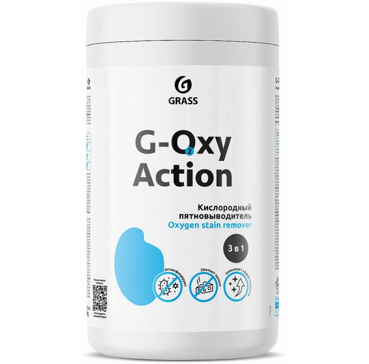 GRASS G-Oxy Action - универсальное чистящее средство на основе активного кислорода, которое эффективно удаляет застарелые загрязнения и пятна, отбеливает, нейтрализует запахи, подходит для белого и цветного белья. Универсальный пятновыводитель, для решения сложных пятен с различных поверхностей. Подходит для пластика, резины, стекла, камня, кафеля, нержавеющей стали, эмалированных металлических поверхностей, фаянса, стеклокерамики, ковров, обивки мягкой мебели, необработанного дерева.