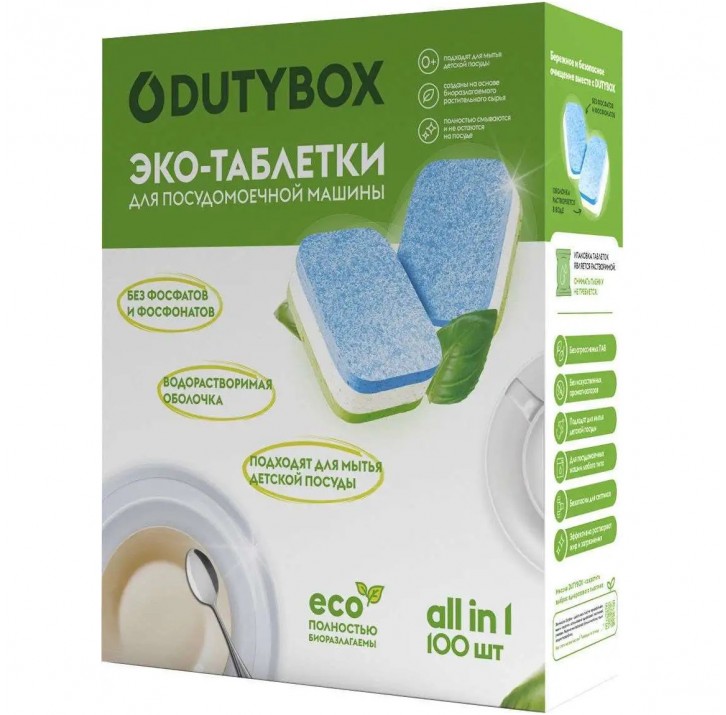 Экологичные таблетки для посудомоечных машин GRASS DUTYBOX предназначены для бережного и качественного мытья посуды и столовых приборов в посудомоечной машинах любого типа. Инновационная формула позволяет удалять загрязнения различной сложности. Качественный состав растворяет засохшие пятна, жиры и крахмал, а так же бережно очищает посуду и столовые приборы придавая им блеск. Полностью нейтрализует запахи и предотвращает образование известкового налета, способствуя долговечной и надежной работе посудомоечной машины.