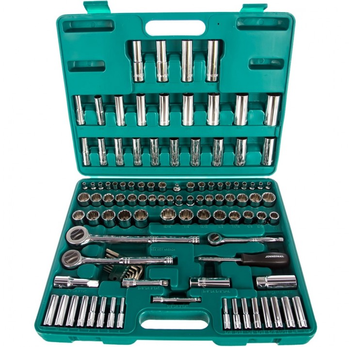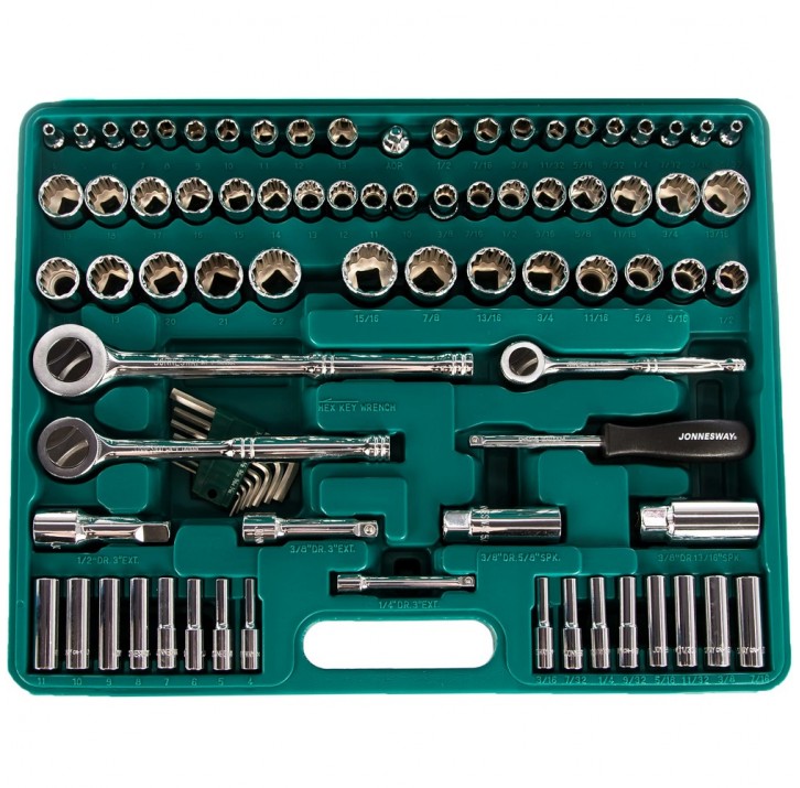 Набор торцевых головок JONNESWAY 1/4", 3/8", 1/2"DR, ключей 5/64"-1/4" 107 пр.
